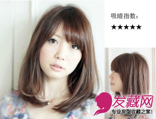 斜刘海搭配中长直发,显清新。染发让皮肤显得更加的白皙。