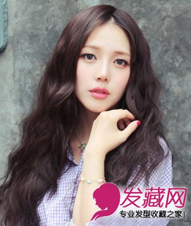 韩式甜美长发烫发,中分卷发修颜,很有水波纹感觉的烫发设计最是时髦减龄,搭配甜美妆容,很适合MM约会时打造。