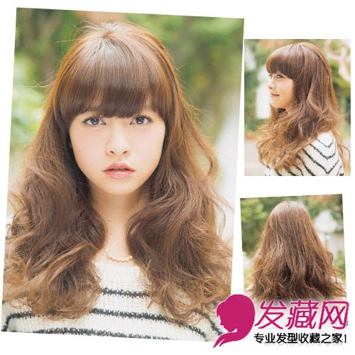 及眼的刘海突出闪亮大眼,搭配蓬松的长卷发修出可爱的小脸。