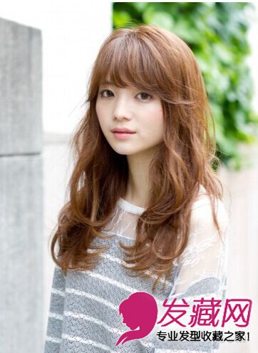 厚重的齐刘海增加减龄的感觉,搭配上波浪的微卷层次烫发造型,日系的减龄风格完美展现出来。