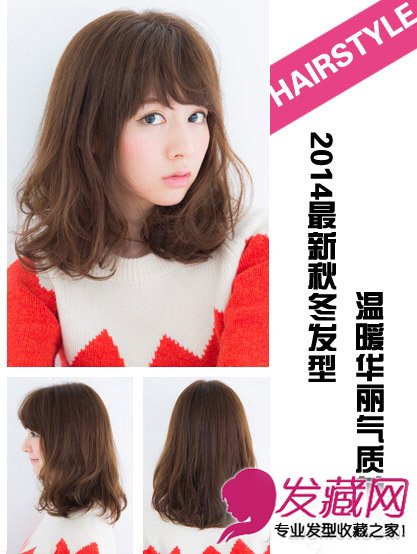 发型点评:棕色卷发散发出浪漫而温暖的光泽感,细腻的卷发如巧克力般让人欲罢不能。厚重的刘海稍显凌乱,修饰脸部线条,凸显出白皙的肤色,温暖又不失气质。