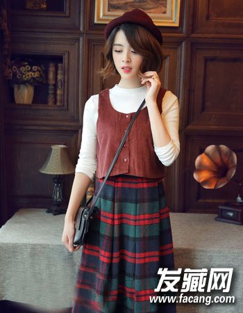 这款颇显复古风潮的女生短卷发造型,斜刘海的短卷发,卷发弧度精致有型,棕色的染发颜色更是为短卷发的时尚风采提色了不少。