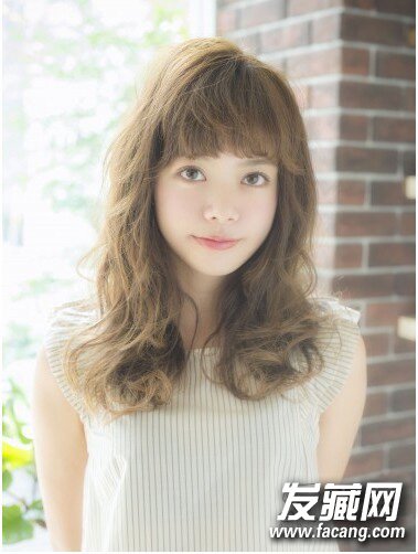 浅棕色的染发颜色衬托出青春浪漫的感觉,增加了不规则层次卷度的烫发造型显得很有时尚的质感。