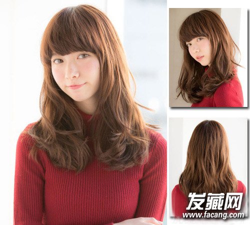 这款中长卷发充满日系甜美范儿,发尾稍稍电卷就能显现厚重感,与同样厚重的刘海相呼应。