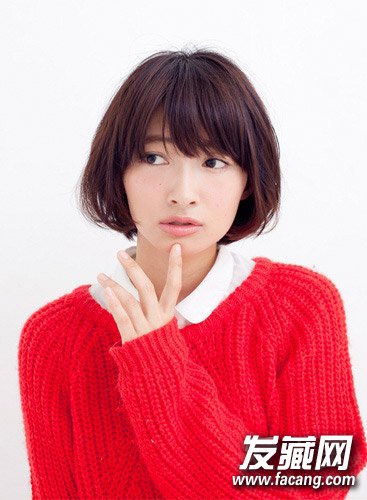 发型点评:短发波波头清爽灵动,清新气质十足。空气感刘海隐约露出眉毛的设计尽显甜美可爱感觉。