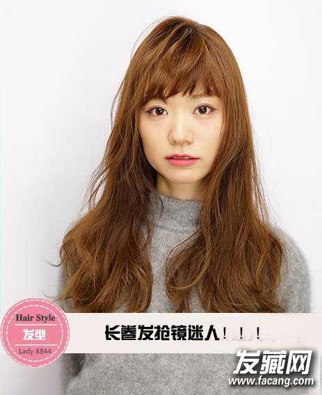 发型点评:蓬松的棕色长卷发饱满靓丽,散发出来的柔和光芒吸人眼球。前额的刘海打造出蓬松的空气感,搭配围绕在脸颊的发束,修颜指数飙升。