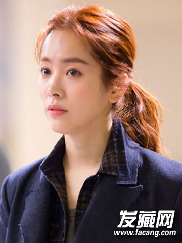 OL必会的一款简单长发扎法,露额的长发扎蓬松的低马尾辫,蓬松发丝自然轻盈,搭配深棕色染发衬托出白皙肤色。