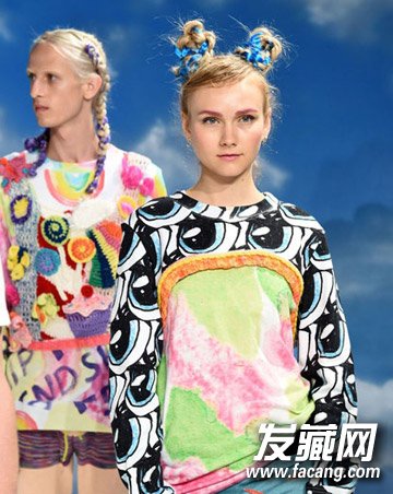 Degen 品牌室展的“哪吒头”也是今年纽约时装周的大亮点之一。将发辫与彩色丝带相缠绕,做出“哪吒头”造型,充满童趣的同时,话题点十足。