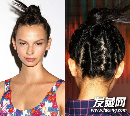 Tanya Taylor 品牌秀今年的造型可谓是抢足了镜头。采用扭股式小辫的形式束起头发,并在头顶绾出一个露出发梢的丸子头,彰显出俏皮活泼的同时,成为时装周上个性十足的亮点之一。