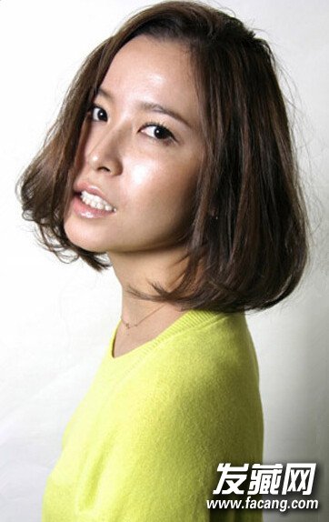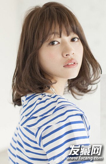 偏分的齐刘海和中长卷发可以帮助美眉修饰巴掌脸型,还可以衬托出美眉的大眼睛,再搭配上发尾的烫发,让这个发型看起来更有特色。