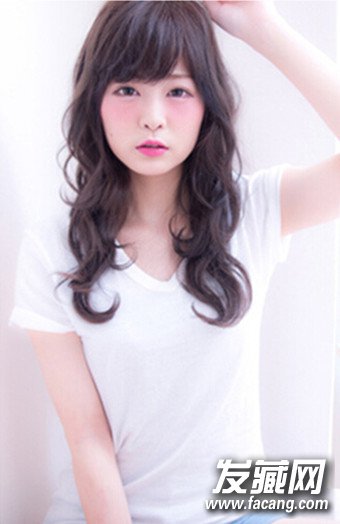 及眉的齐刘海微微烫卷,再打造蓬松的效果,头发从眉毛处开始烫成蛋卷头,发尾略薄,这样可以减轻卷发的厚重感打造出轻盈的感觉,还可以凸显出美眉清纯可人的气质。