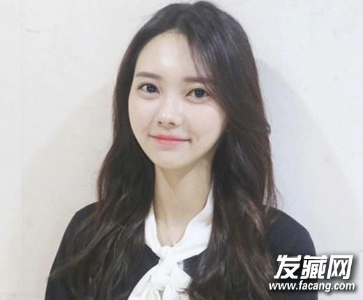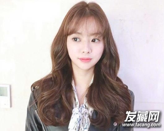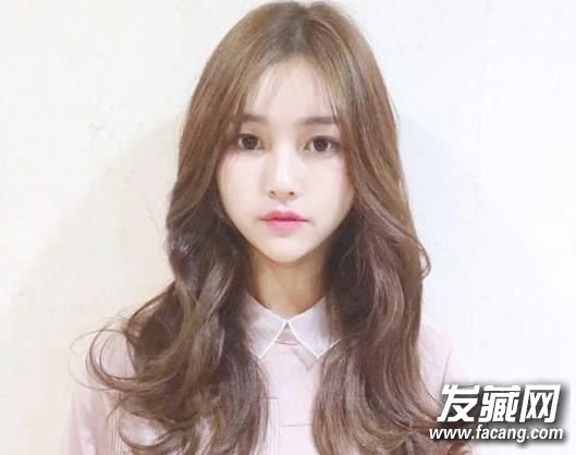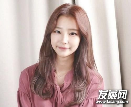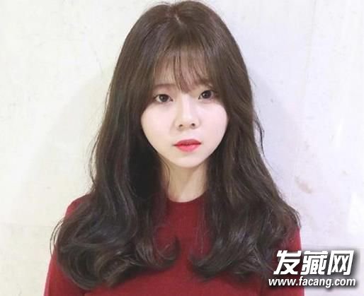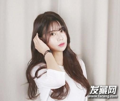 发尾内弯的空气刘海一直是萌妹最爱,搭深棕色大长发甜美温柔,很显韩范的一款发型。