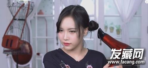 发尾拉着不要放,直接在发根的位置,将刚刚卷好的头发再盘成春丽丸子头,用头绳框住固定即可!