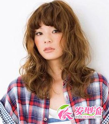卷刘海+中长卷发 此款圆脸发型有着非常强的瘦脸效果哦!头发全部烫出均匀的卷度,富有层次感,显得十分轻盈动感,包裹着脸颊。刘海同样也烫出卷度,显得与众不同,同时又进一步增加瘦脸效果。
