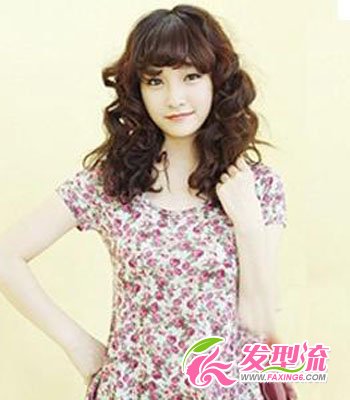 平刘海+蛋卷头 蓬松蛋卷头,非常个性又显时尚,也是很受追捧的一款圆脸发型。平刘海搭配卷发,很好地修饰了肉肉的脸。淡淡的栗子色发色,充满了年轻气息和时尚感,散发出几分轻熟女的味道。