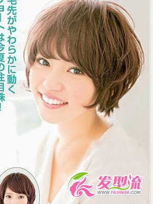 推荐给职场OL的干练女士!在办公室利用这款短发烫发打造出干练的味道,也能偶让你人气大涨呢!轻熟女最爱的斜刘海搭配棕色的染发发型,整体洋溢着时尚的味道!两侧微微蓬松的卷翘度有效地遮盖了圆脸或者是方脸女生的部分,展露出她灿烂的笑容与洁白的牙齿,娇小玲珑脸立马呈现!