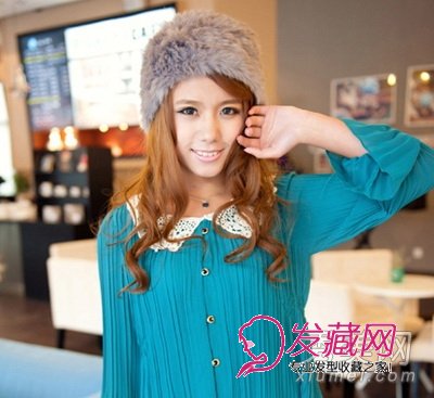 青春的可爱日系女生发型,卷发发丝围在脸颊两边,头顶的紫色毛绒帽,很美很有气质,要小脸蛋的女生们,换这款发型轻松得到效果。