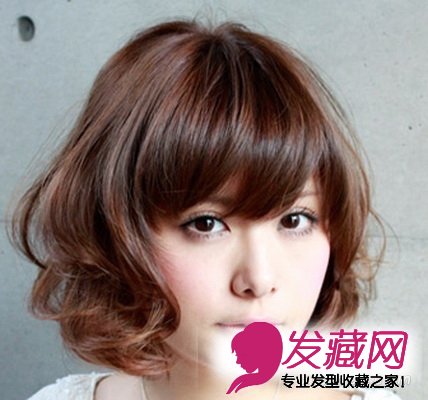 弧度斜刘海及短短发都可以将圆脸脸遮住 。