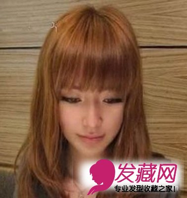 小编点评此款梨花头,厚重自然的齐刘海遮住脸部三分之一处,让脸型瞬间变成V字形,有缩短脸型的效果,再加上发尾稍稍内卷搭配金黄色的染色,散发出酷酷的感觉。