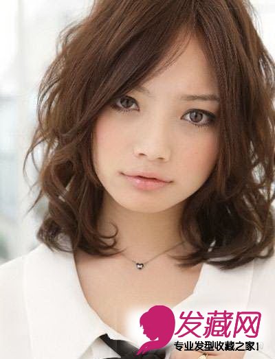 小波浪卷发,很有层次的蓬松度。有点慵懒却清新的学生气质。深咖的发色,也显得比较有质感。分向两侧的长刘海,弧度很美,也很好的修饰了包子脸的缺陷。