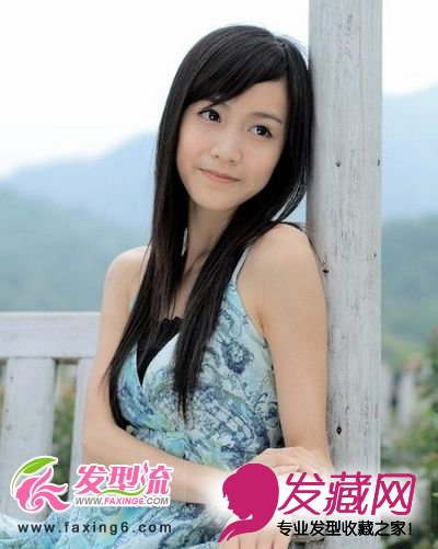 这款乌黑油亮的长直发发型,凸显MM清纯可人的形象,柔顺的长发,两侧发丝紧贴两颊,额间的斜刘海修饰了长脸脸型。