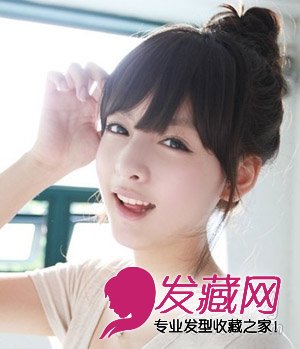 可爱的丸子头让裸露的脖子显得更加拉长脸型,完美达到瘦脸的效果。