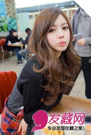 小编点评:侧分的长卷发,可以很好的遮挡脸部肥肉,发尾散落的大卷,显的发型非常生动