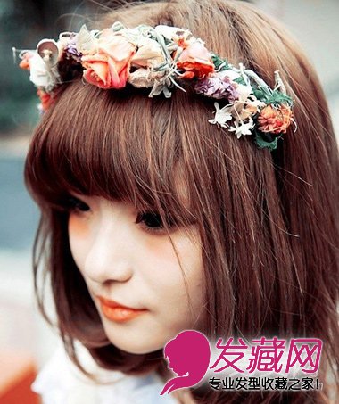 精致的彩妆,显梦幻妩媚,内扣的中发梨花头,动感优雅,内扣的齐刘海瞬间瘦脸减龄,加别致发箍搭配异国风情味尽显。