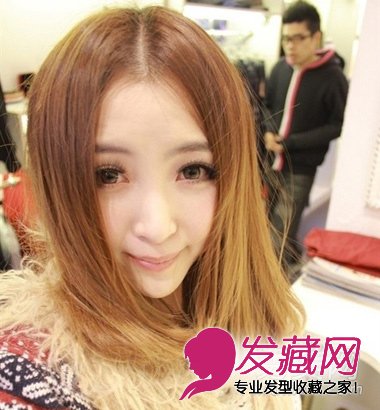 非主流女孩齐发尾的直发梨花头,随性甜美,中分的长刘海突出可人的大眼睛,金亚麻色的染发,非常的潮流耀眼。