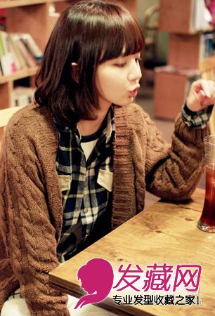 小编点评:露出眉梢的齐刘海给人感觉清新淡雅,微微斜分的弧度显得更加俏皮活泼。齐颈的中短发烫上简单随意的大卷,使得头发更加蓬松饱满,可以起到使脸型看起来更加小巧的视觉效果