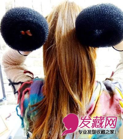 步骤2:然后准备好两个,扎丸子头的海绵呢,在以下的步骤很有用哦。