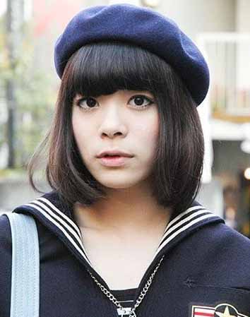 乖巧可爱的齐发荷叶头,配上学生气十足的帽子 ,给人一种非常可爱甜美的感觉