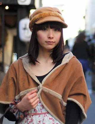 齐刘海的造型配合上帽子 的使用能够让人感觉十分的文静。