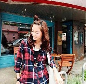韩国MM最爱的刘海小发髻登场了,扎法也相当简单,长刘海的MM可以回去试试看,一般卷发 比较适合这个发型,如果你是直发只要在头发上多加点小心思也是会出现别样风情的哦!
