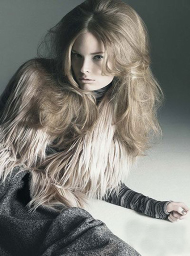 让你的发型看起来蓬松和凌乱一些。用吹风机和圆筒鬃毛梳将头发从半湿状态吹至全干,圆筒梳可以使每根发丝均匀受热。大卷度的卷发 整体向后梳,很有欧洲公主范儿。
