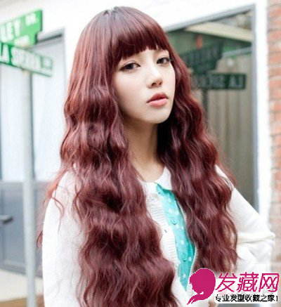 长发的蛋卷头非常有女人味,这一款长发的蛋卷头非常有造型感,加上酒红色的人发,更加时尚妩媚了,让皮肤更显白。齐刘海的造型又增添了一丝可爱俏皮的气息,整个造型甜美优雅而不失时尚。
