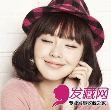这款女生梨花头发型主要特点在于轻薄的齐刘海发型,既能解决脸型问题,还具有减龄作用。