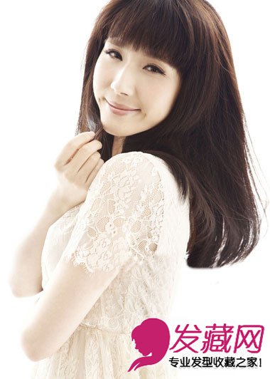 方安娜甜美小清新齐刘海直发梨花头,尽显娇小可人的小女人味道十足。