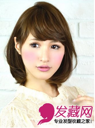 现代女性化与复古模式风的完美结合,亮点在于刘海的设计上,顶部的侧动翻卷,刘海的侧梳带有淡淡的现代复古感觉。其次,将头发吹响一边,塞至耳后,小脸的效果搭配起来尤其漂亮。