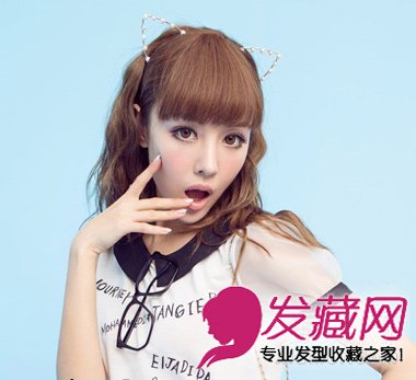 中长发随意披肩留着齐刘海,卖萌指数上升。加上头顶两个白色形状的猫耳朵配上卖萌的表情,简单的打造出清爽造型。