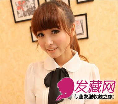 这款非主流女生发型,内扣的齐刘海,突显女生俏皮可爱,扎起小马尾,展现女生清纯活力。