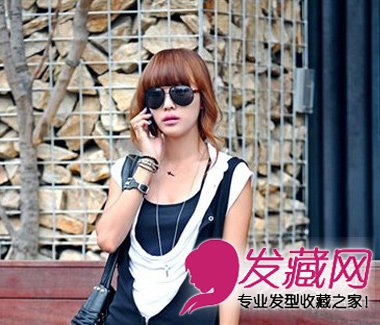 这款齐刘海发型,两边的长刘海微卷,自然的在脸颊两边能绝妙的修饰脸型,甜美又淑女,同时带有一丝女人味。