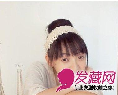 日式小公主迷人发型,碎发的齐刘海,后面盘起大大的花苞。搭配蕾丝花边的发圈,展现了甜美可爱的小女生个性。