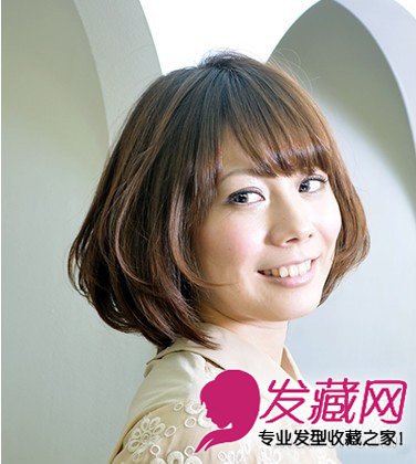 齐刘海不变,从中段部位烫出内扣式的造型,更加衬托出脸型。而深色的染发对于白领来说也是相当适合的。