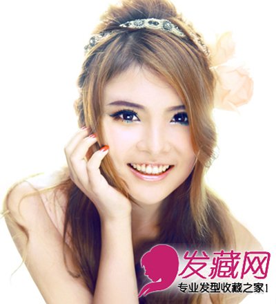 同样是半扎发,这样在发顶挽一个韩式花苞,配上闪亮的发饰,更显高贵公主魅力,还能完美的塑造好看的头型,金铜色染发个性柔美。