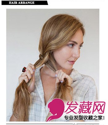 step1:先将头发全部理到右侧,再将发束分成均等四束。