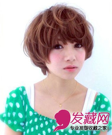 发型点评:这款短发发型将整体发丝朝前梳,做了定位烫,让整体造型圆润饱满。发鬓的长度正好修饰了菱形脸的外扩,蓬松卷曲的刘海又很好地修饰了额头。