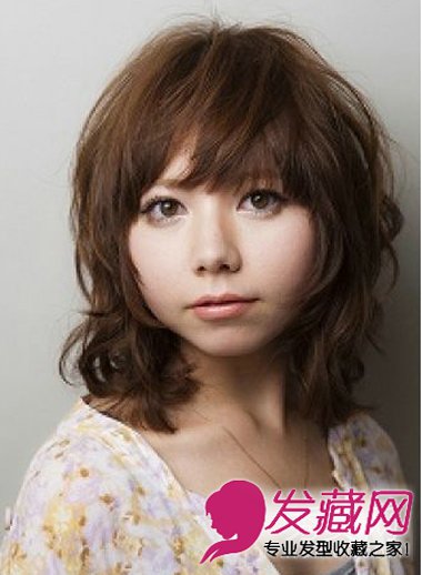 发型点评:这款发型整体都烫成卷曲的弧度,利用层次感刘海能够修饰长脸,两侧发鬓的长度正好掩盖了方脸的棱角,内扣的造型还能很好地修饰圆脸。