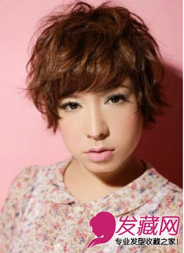 发型点评:这款短发烫发具有显高的效果哦!小个子MM不妨尝试看看。利用刘海遮住额头,能够让长脸看起来显得和谐。