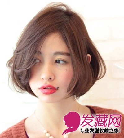 国字脸女生也合适短发,设计合理的卷度和刘海,精心的调制、搭配也能很好的修饰国字脸脸型。前面刘海中空蓬松,脸型两边的秀发,内卷加蓬松,增添体积与质感,从而以视觉上的对比效果将脸型变小,达到修饰脸型的效果。
